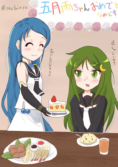 遅刻しましたが… 五月雨進水日おめでとうございます! というわけで五月雨アンミラ服描きました👍✨ (とサポートするアンミラ春雨) #艦これ版深夜の真剣お絵描き60分一本勝負 #艦これ版真剣お絵描き60分一本勝負_20220706 #五月雨 #五月雨進水日2022 #五月雨生誕祭2022