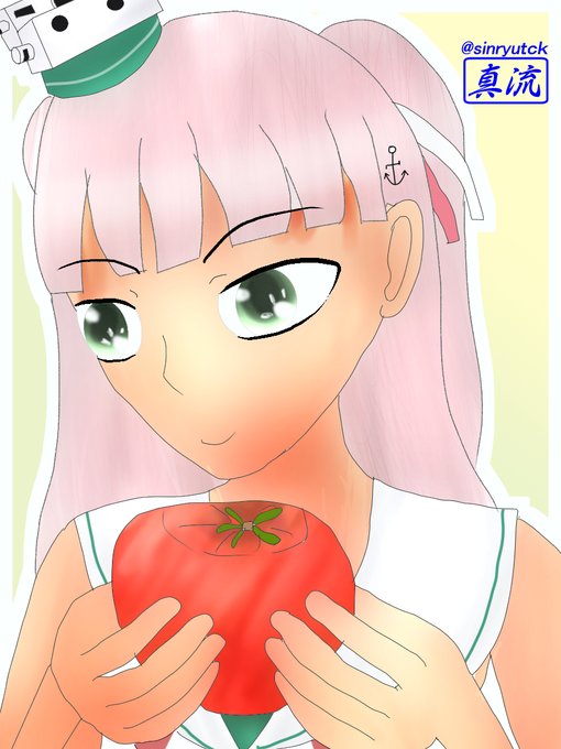 そういやイタリアントマトも有名だよなぁとマエストラーレさん。 家に大量のトマトをもらってきてしまい消費するのも大変。 まあ食えるけどちょっと厳しいです。置いとくと発酵して破裂しちゃうしどうするか。 #艦これ版深夜の真剣お絵描き60分一本勝負 #艦これ版真剣お絵描き60分一本勝負_20220708