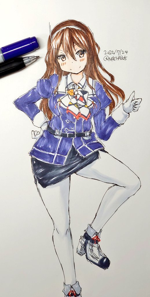 #艦これ版深夜の真剣お絵描き60分一本勝負 #艦これ版真剣お絵描き60分一本勝負_20220724 #足柄 案の定遅刻しました。 狭霧(の水着)柄さん、#足柄山の狼さん 向け告知ポスカで全身像を出す予定です。 何故か、後ろに3本くらい太目の線を引いて編み上げのロングブーツ履かせたくなっちゃうんですよね。