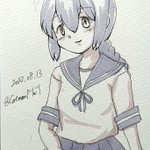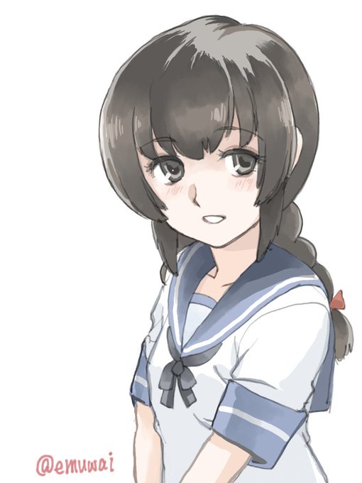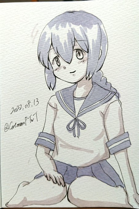 磯波。「え?ポーズ?こうでしょうか?…ちょっと恥ずかしいですね」 撮られる側は苦手なISO波ちゃんはかわいいと思います。なんかR君っぽい姿勢ね。 #艦これ #磯波 #艦これ版深夜の真剣お絵描き60分一本勝負 #艦これ版真剣お絵描き60分一本勝負_20220813