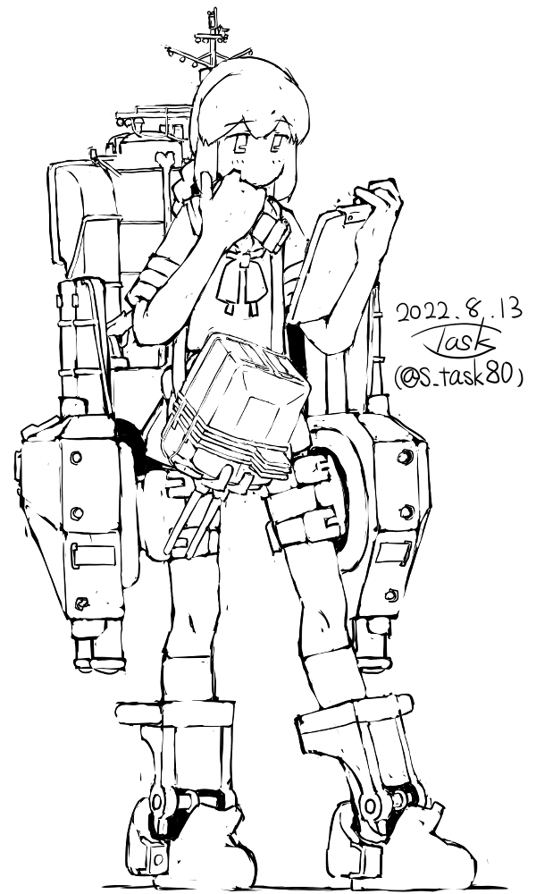昨日描いた伊良湖の後ろ姿を描いた 宗谷がいるんだから伊良湖も実装したらいいのに 俺的には間宮はどっちでもいいが伊良湖の大破が見たいかな #艦これ版深夜の真剣お絵描き60分一本勝負 #艦これ版真剣お絵描き60分一本勝負_20220813 #伊良湖