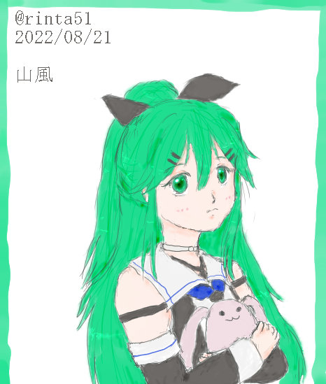 この日だからあたしにこの子を、ってどういう事…?…別に嫌じゃないけど…。 (今回はバニーの日という事で、リボンから連想して山風ちゃんで参加!そして、SOシリーズのマスコットのバーニィもセットで…🙂) #艦これ版深夜の真剣お絵描き60分一本勝負 #艦これ版真剣お絵描き60分一本勝負_20220821