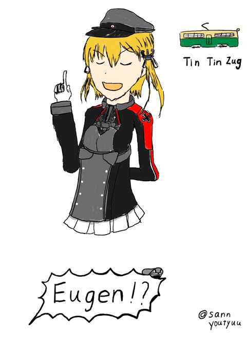 「ビスマルク姉さま、今日は私の進水日であると同時に、ツィンツィン=デンシャの日でもあるそうですよ!」 #艦これ版深夜の真剣お絵描き60分一本勝負 #艦これ版真剣お絵描き60分一本勝負_20220822