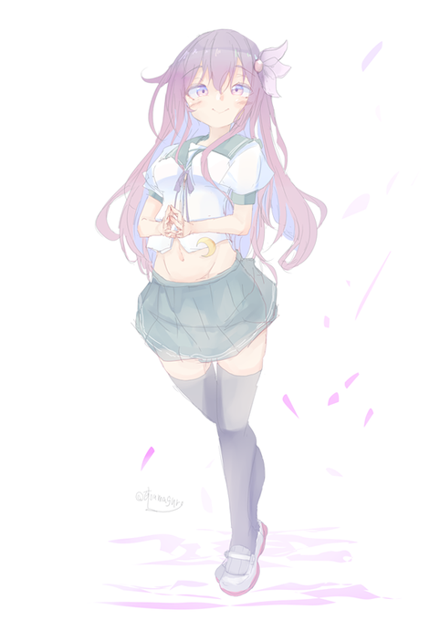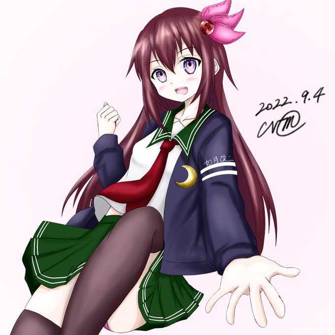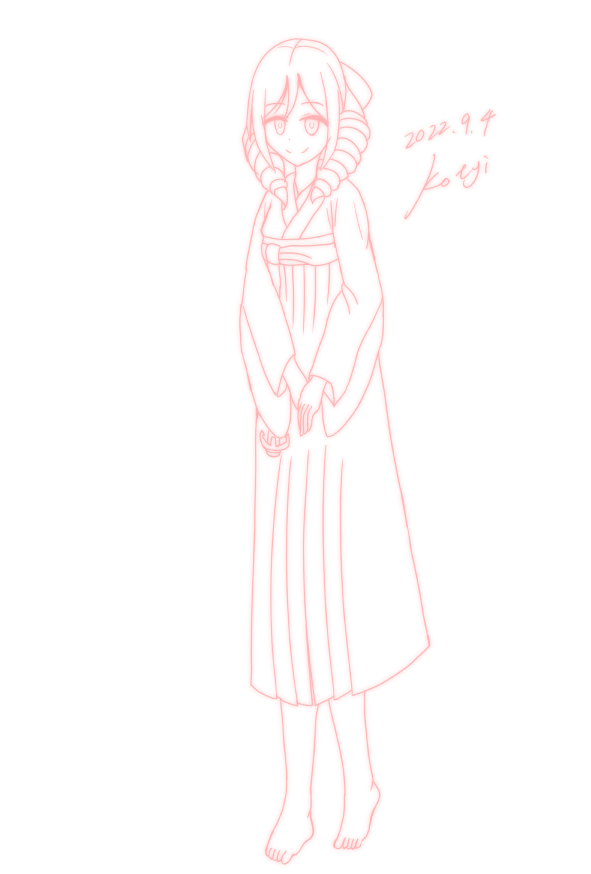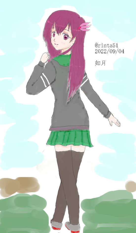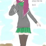 司令官、たまには散歩して気分を変えるのもありよ。一緒に行きましょう、ね? (今回は如月ちゃんという事で、以前描いた睦月ちゃんをベースに、且つ以前の如月ちゃんと同じようなポーズでリファインしました) #艦これ版深夜の真剣お絵描き60分一本勝負 #艦これ版真剣お絵描き60分一本勝負_20220904