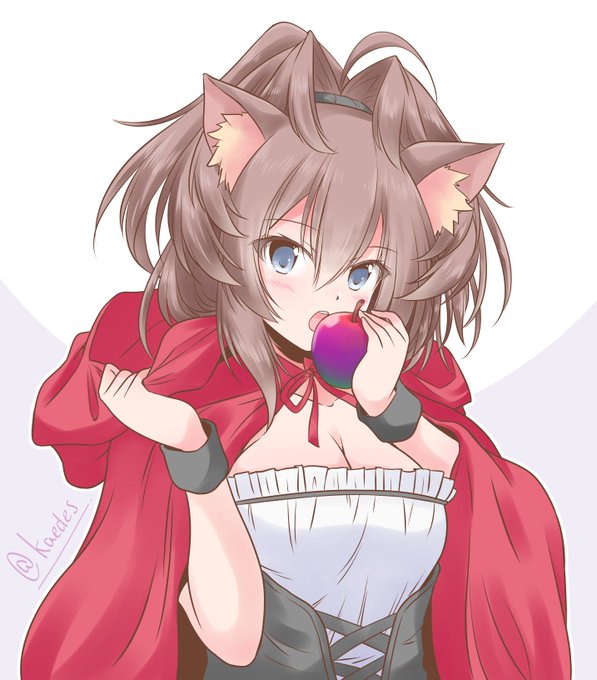 「キミも毒林檎…食べたい?」 #艦これ版深夜の真剣お絵描き60分一本勝負 #艦これ版真剣お絵描き60分一本勝負_20221024 #艦これ #シェフィールド 鎮守府ハロウィンコスプレ祭。 赤ずきんちゃんの正体は狼っ娘のような魔女シェフィだった。 髪とフードの大きさについては気にしない。