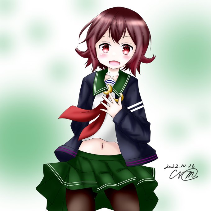 「よろしくちゃーお」 サイズ感間違えた。 日焼け跡があるのか無いのか迷ったので両方・・・ #艦これ版深夜の真剣お絵描き60分一本勝負 #艦これ版真剣お絵描き60分一本勝負_20221026