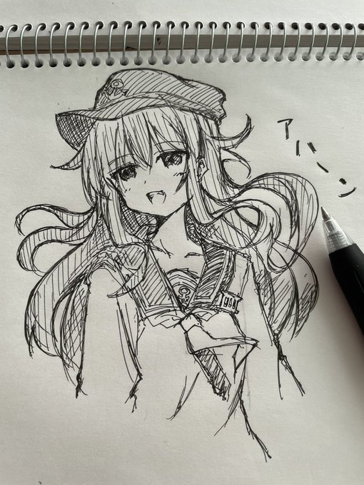昨日落ちて完成できなかったアハーンな暁ちゃん。 ポールペン描きだから実際の時間は数十分くらい。 #艦これ版深夜の真剣お絵描き60分一本勝負 #艦これ版真剣お絵描き60分一本勝負_20221104