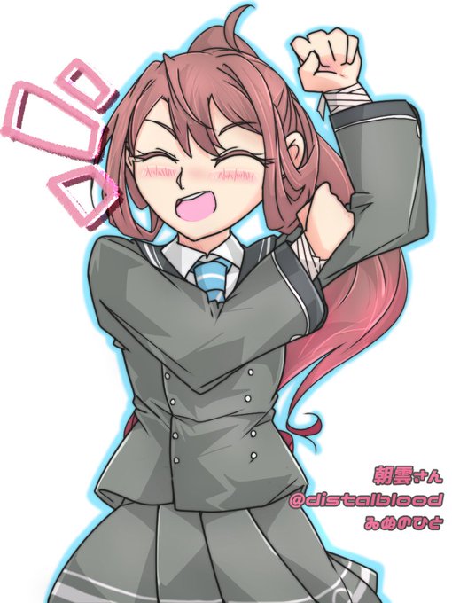 #朝雲進水日 #艦これ版深夜の真剣お絵描き60分一本勝負 #艦これ版真剣お絵描き60分一本勝負_20221105 アニメで動く朝雲ちゃんは可愛いねぇ 史実通りだと早々にクランクアップすると思うけど、それまでは存分な活躍期待しているぜぇ! (なお隼鷹さんはマリアナ沖で痛手を受け療養中、出番無しだぜぇ💧)