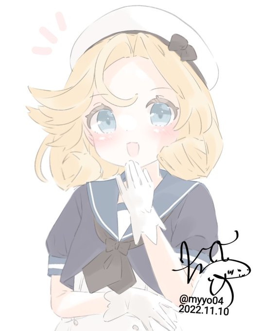#艦これ版深夜の真剣お絵描き60分一本勝負 #艦これ版真剣お絵描き60分一本勝負_20221110 ジェーナス炊飯衣装かわいい 背中側のスカーフどうなってるか迷ったので、垂らす結び方のやつ採用してみた 30分ちこく