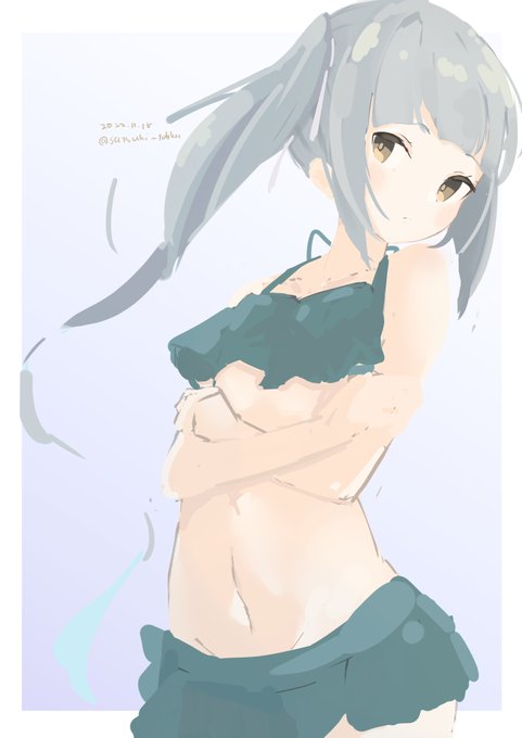 「水無月いきまぁーす、…なんてね、えへへ」 (今回のワンドロは普段よくはにかむ印象な水無月ちゃんで!…今回も遅刻スタート且つツードロ強でした💦) #艦これ版深夜の真剣お絵描き60分一本勝負 #艦これ版真剣お絵描き60分一本勝負_20221118