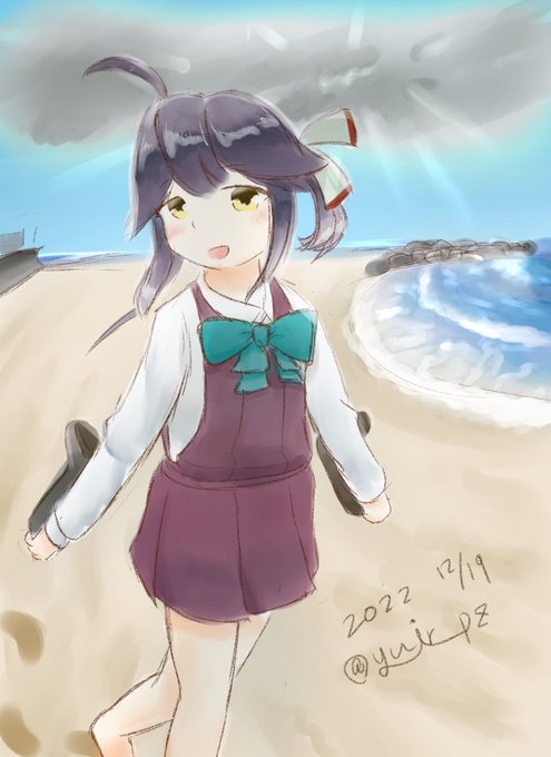 寒いのに夏の早波のペン入れしちゃいました あ~寒い 下駄ばきクエストやってるけど何もらっていいのかわからない みんなあるし使わない でも負けると悔しいので勝てるクエストばかりやっちゃう #艦これ版深夜の真剣お絵描き60分一本勝負 #艦これ版真剣お絵描き60分一本勝負_20221219 #早波