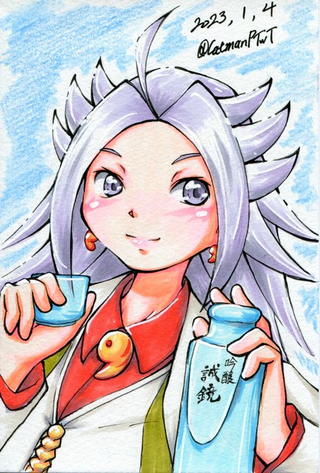 #隼鷹 #艦これ版深夜の真剣お絵描き60分一本勝負 #艦これ版真剣お絵描き60分一本勝負_20230104 今回の年越しは呉観光も兼ね、とても楽しく過ごしました 隼鷹さんが飲んでいるのはその時に買った広島は竹原市、中尾醸造さんの誠鏡(せいきょう) とても口当たり良い日本酒、美味しく頂きました