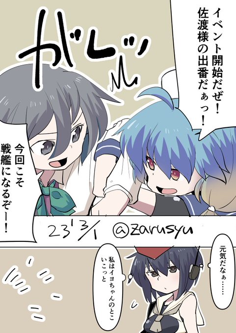 とりあえずイベントがきて盛り上がる組。 かくいう自分もまだ様子見してるくせに、時々イベント海域アイコンクリックしてちょっと興奮してたり。 清霜、佐渡、伊13 #艦これ版深夜の真剣お絵描き60分一本勝負 #艦これ版真剣お絵描き60分一本勝負_20230301