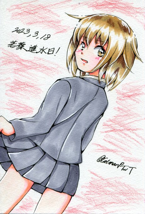 #若葉進水日 #艦これ版深夜の真剣お絵描き60分一本勝負 #艦これ版真剣お絵描き60分一本勝負_20230318 凛とした若葉ちゃんの可愛さを出したいなぁと、お尻を意識できそうなポーズ 若葉ちゃんにとってはちょっと不本意?