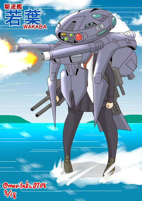 支援ユニットを装備した若葉 若葉『駆逐艦、若葉だぁ! 当たると痛いぞ!!』 #艦これ版深夜の真剣お絵描き60分一本勝負 #艦これ版真剣お絵描き60分一本勝負_20230318 #艦これ #若葉