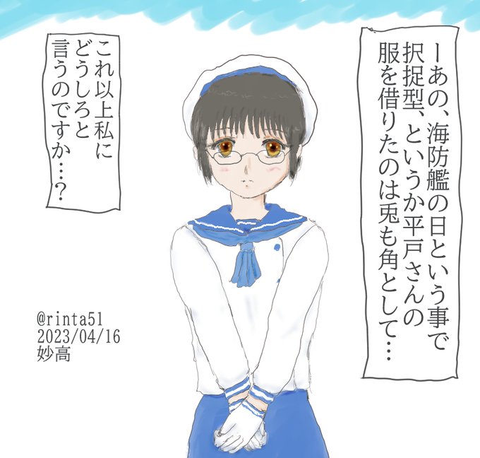 (今日は進おめの妙高さんで!それとお題に平戸ちゃんがあり、かのオンリーも盛況だったようなので(?)平戸ちゃんの衣装を着せてみました✨そして今日は何とか当日中に間に合った…!🙌) #艦これ版深夜の真剣お絵描き60分一本勝負 #艦これ版真剣お絵描き60分一本勝負_202304016