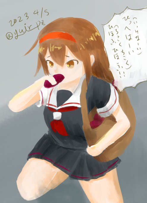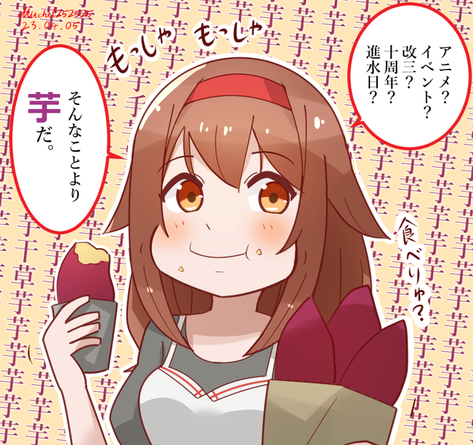 「いちごもブルーベリーも美味しいけどさー、お芋のタルトなんかも美味しそうだと思わない?」 次回あったらどうですかミスターイトウさん? #艦これ版深夜の真剣お絵描き60分一本勝負 #艦これ版真剣お絵描き60分一本勝負_20230405