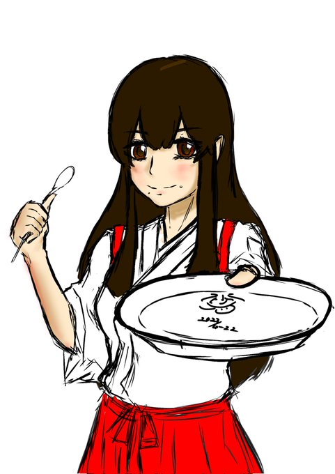 #赤城 #赤城進水日 #艦これ版深夜の真剣お絵描き60分一本勝負 #艦これ版真剣お絵描き60分一本勝負_20230422 赤城さんいっぱい食べるキミが好きだっ!!!(● ˃̶͈̀ロ˂̶͈́)੭ꠥ⁾⁾