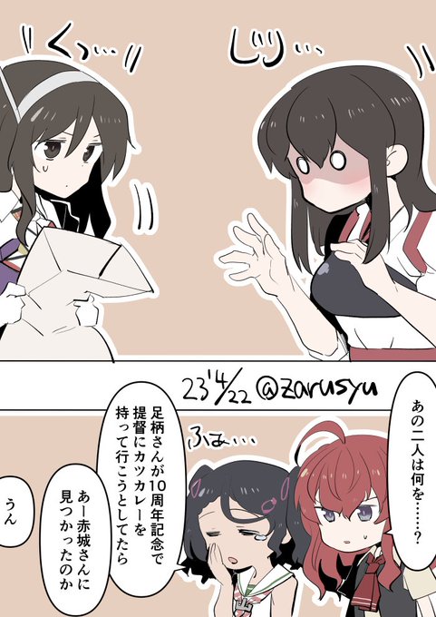 赤城「ていとく♡ お弁当余分に作りすぎちゃったので、 良かったら食べませんか?♡」 足柄「なによ作りすぎたって!?💢 ご飯はがっつり♡マークじゃん!💢」 #艦これ版深夜の真剣お絵描き60分一本勝負 #艦これ版真剣お絵描き60分一本勝負_20230422 #赤城生誕祭2023