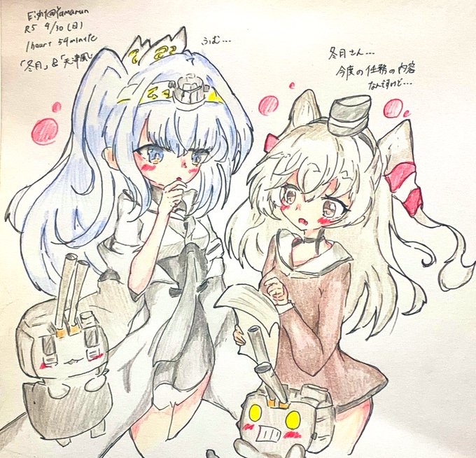 任務内容確認する天津風とお冬さん!!!!\\\\٩( 'ω' )و ////(*´꒳`*) #冬月 #天津風 #艦これ版深夜の真剣お絵描き60分一本勝負 #艦これ版真剣お絵描き60分一本勝負_20230430