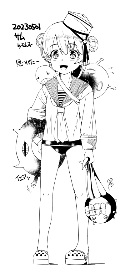浜辺でいろんなものをひろってきたサム(サミュエルBロバーツ)。少し幼い感じがするが気にしない。ちょい早めにやってたので時間前にうp #艦これ版深夜の真剣お絵描き60分一本勝負 #艦これ版真剣お絵描き60分一本勝負_20230501