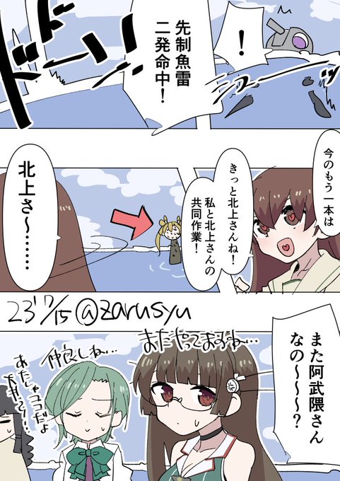 旗艦を庇ったなどでなくても、仲良し魚雷(同じ敵を狙う)って結構起きてる印象 大井、玉波、鳥海 #艦これ版深夜の真剣お絵描き60分一本勝負 #艦これ版真剣お絵描き60分一本勝負_20230715