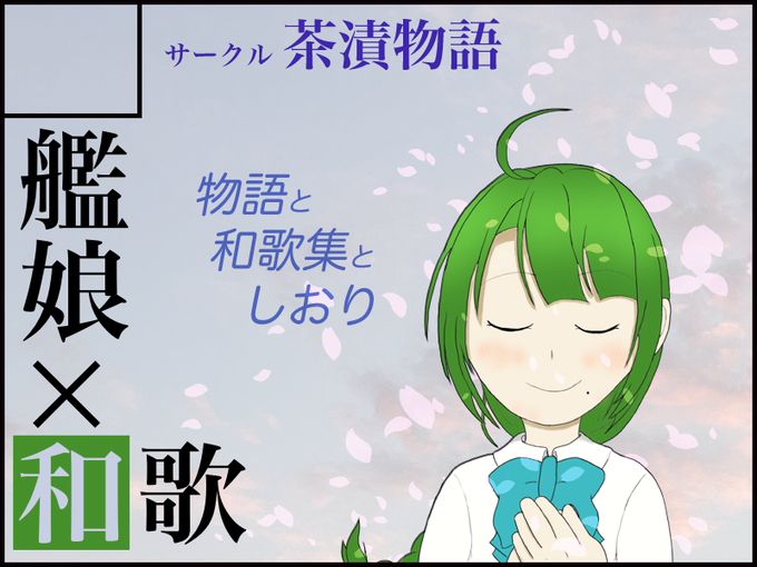 あなたのサークル「茶漬物語」は、コミックマーケット101で「金曜日西地区 "お " 02b」に配置されました!コミケWebカタログにてサークル情報ページ公開中です! webcatalog.circle.ms/Perma/Circle/1… #C101WebCatalog 新刊①の入稿を終え、②の方も近日中に。 というわけで改めて、以上告知をば。 #艦娘短歌集