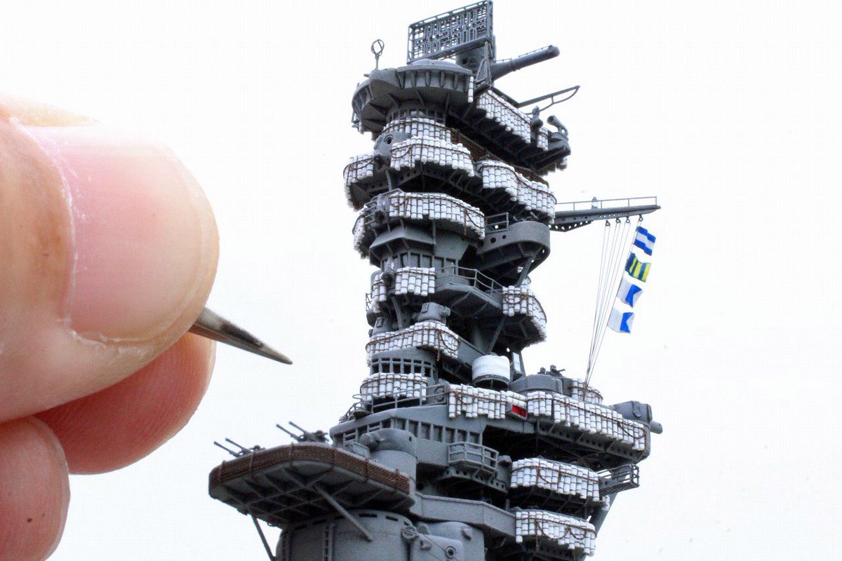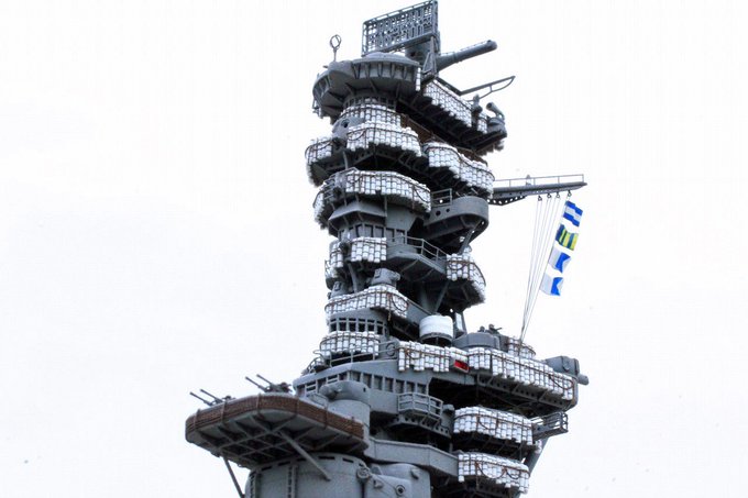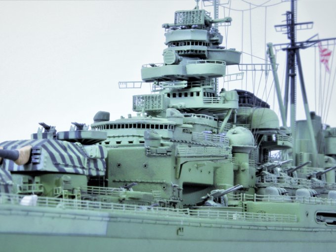 #艦橋だけでフォロワーさんを惚れさせる 便乗します‹‹\(´ω` )/›› 個人的な見解なんですけど、エッチングパーツはただ付けるだけじゃダメなんですよ。馴染ませるというか、一体化させるというか、、、上手く言えませんが、その点を注意して僕は製作しております。