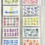 #今月描いた絵を晒そう 絵というか色あそひですが…(1枚目の写真左列は2月分です)。なお今日の分はまだ乾燥中です。 たくさん集まると嬉しいなー☺️🎨新年度も色でいっぱいあそびます! #色日記 #色あそび #watercolor #drawing