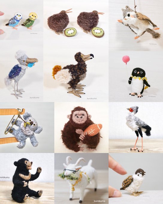 #色んな世界観を覗いて見ませんか 毛糸とワイヤーでできた動物たち クチバシを開け閉めできる鳥のブローチや、手足を曲げ伸ばししてポーズを変えられるクマのオブジェなど、ちょっとしたユーモアを大事にしています。