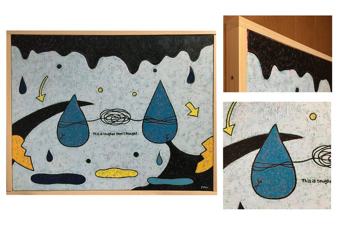 縁個展-after 作品WEB販売中! 大切に思ってるからこそ生まれてくる哀しい気持ち。そんな作品です! ---------------------- 題:哀 アクリル絵具、黒ペン F6号 ---------------------- 作品WEB販売 artsmarket-official.square.site/shop/yuka/9 会場view theta360.com/s/rKy53D7z59nY… #色プロデュース #イラスト #現代アート