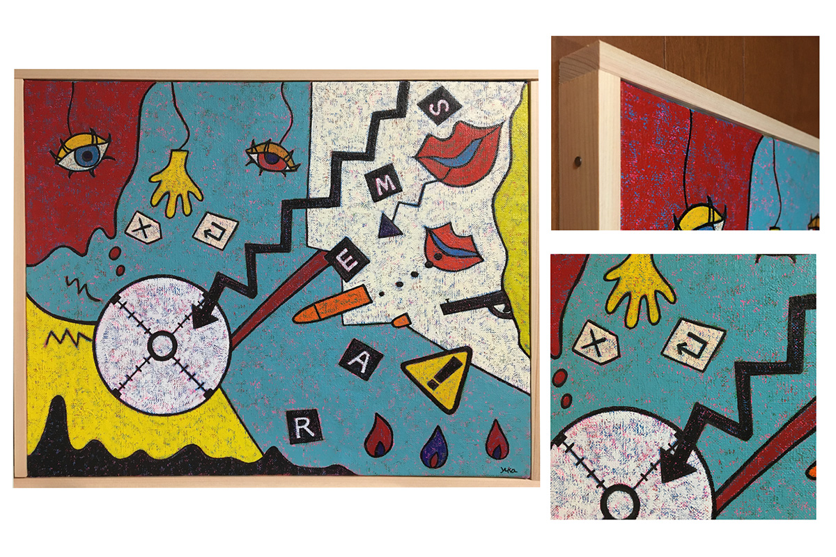 縁個展-after 作品WEB販売中! 自分に余裕がない時やイライラしてる時でも他人に攻撃的になってしまう事がないように。。 題:攻 アクリル絵具、黒ペン F6号 作品WEB販売 artsmarket-official.square.site/shop/yuka/9 会場view theta360.com/s/rKy53D7z59nY… #色プロデュース #イラスト #現代アート