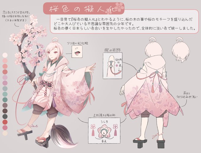 #色彩検定イラコン2022 今回参加しました桜色の擬人化のさくらぎです🌸 残念ながら受賞ならずでしたが、本気でキャラデザして楽しく描けました😆 好きな子なので定期的に描いていきたいなぁと思いつつ、次回も楽しみにしております🔥 素敵な企画ありがとうございました!!