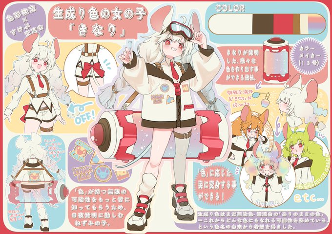 去年に続き今年も応募しましたが入賞は叶いませんでした…でも1からキャラクターを生み出すのは楽しかったです!入賞された方の作品はシンプルでも魅せ方の拘りを感じて、参考にできるところがたくさんありました!来年もリベンジしたい!デザインした子はこの子です! #色彩検定イラコン2022