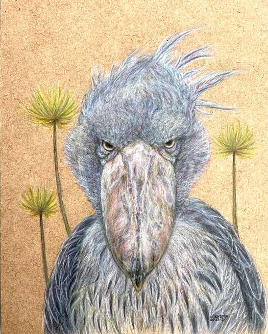 色鉛筆アートマーケット 20名の作家が色鉛筆で描くインチサイズ限定の世界 本日2/19(日)は12:00-17:00在廊しております 最終日なので17時までとなっております 皆さまのお越しをお待ちしております☺️ #色鉛筆アートマーケット #galleryDAZZLE #色鉛筆イラスト #色鉛筆画 #曽我美香 #ハシビロコウ