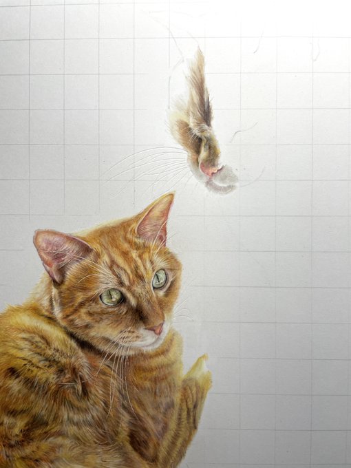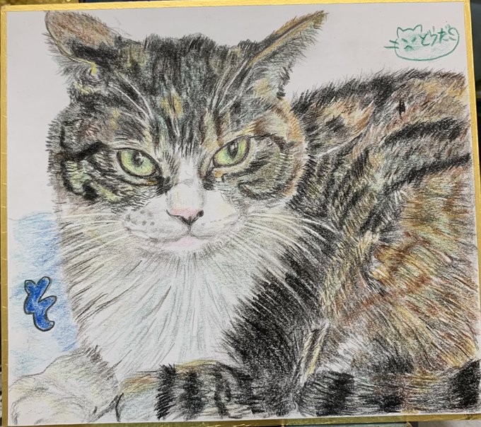 また寝る前に ベッド行って 襲いたいにゃ! 「寝なしゃい!」って 怒られるのが楽しかったにゃあー #ねこ #猫 #色鉛筆画 #cat #猫好きさんと繋がりたい #イラスト好きさんと繋がりたい