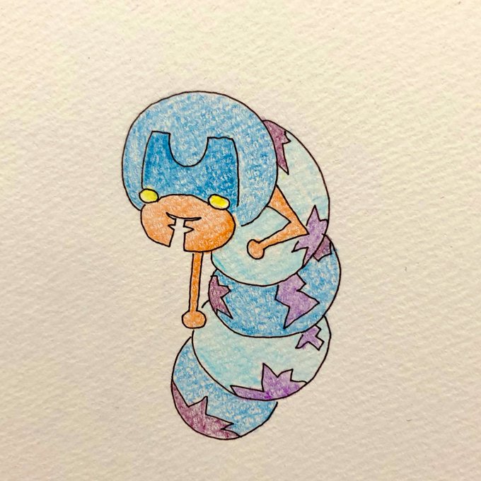 パンチ君です。 将来は華麗で強い蝶に成れると思っているが、本当はムキムキハガネカナブンになる事を彼は知らない いつ襲われてもいいようにボクシングをやっているが、さすがに2m近い芋虫は誰も襲わない。 #イラスト好きさんと繋がりたい #絵描きさんと繫がりたい #オリキャラ #芋虫 #カナブン
