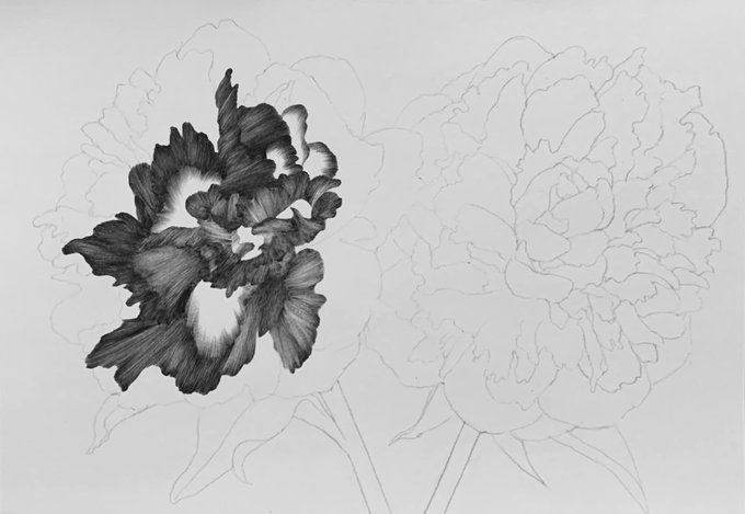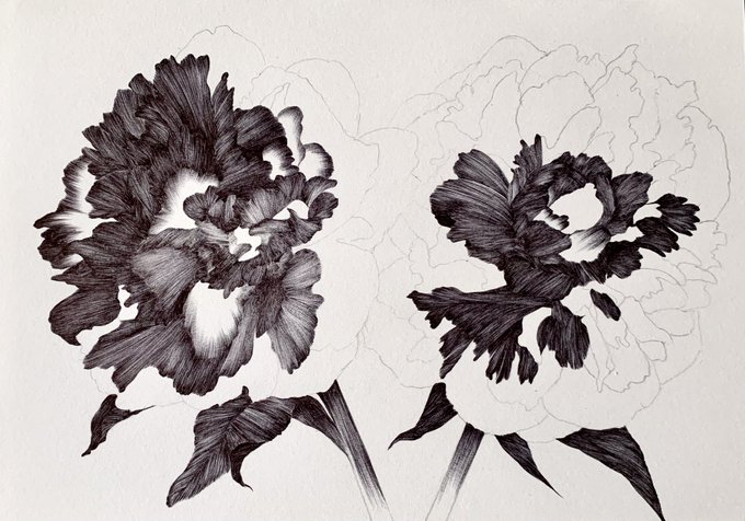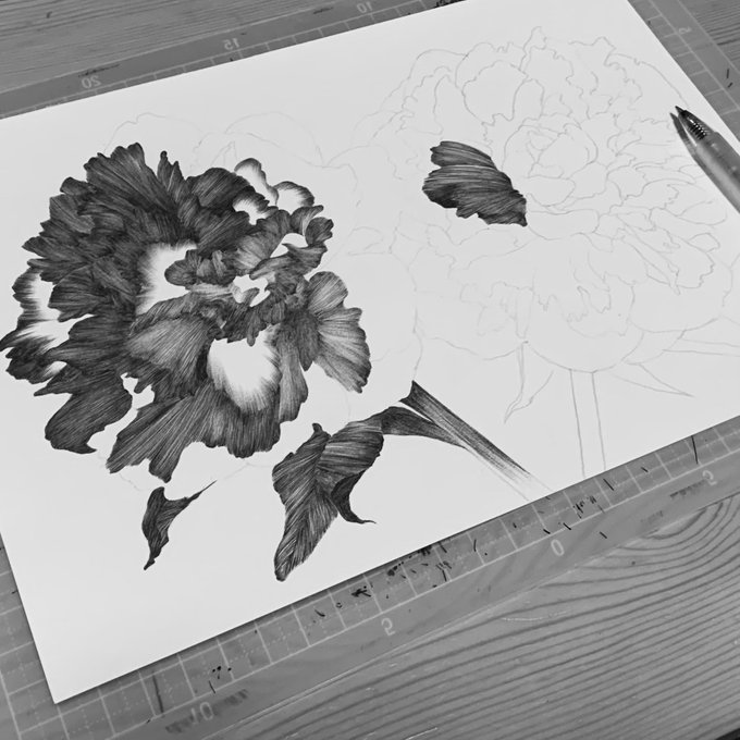 ボタニカルアート制作途中。サラベルナールという名前のシャクヤクです。インスタにも見に来てください。 instagram.com/miyazawa_kayok… #シャクヤク #芍薬 #peony #sarahbernhardt #ボタニカルアート #植物画 #細密画 #水彩画 #ボタニカル #botanicalart #watercolor #art #botanicalpainting #flower