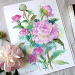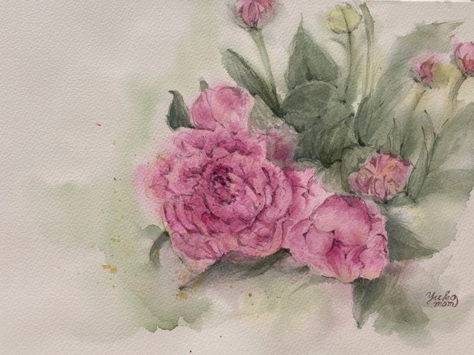 どうやら、目ははやり目だったらしい 2回医者行ったのに、何を診断してたんだろ😅今回は別の医者で対応してもらった💦 酷いと遮光器土偶みたいになるって言われた😰 #watercolor #watercolorpainting #透明水彩 #芍薬 #花 #水彩 #painting #水彩画 #みんなで楽しむTwitter展覧会