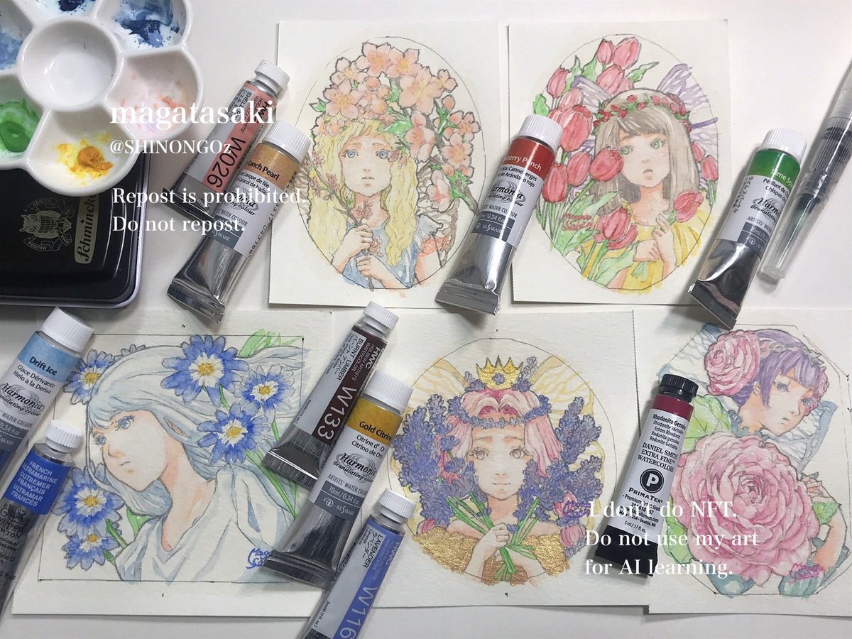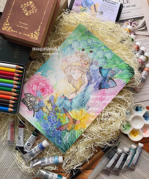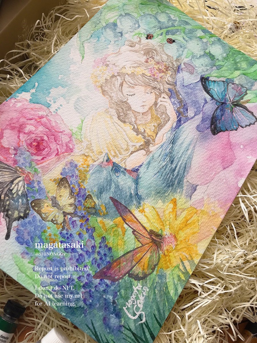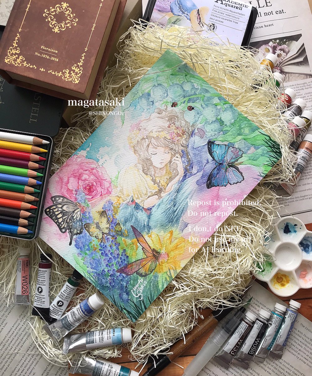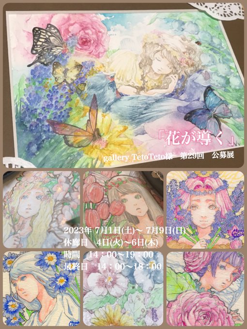 ご紹介いただき感謝致します💠 今回は色を多用しつつも、童話モチーフでアンティークな作風に仕上げました。 ご縁もいただいておりありがとうございます🙇♀️✨ 本日7/4(火)~7/6(木)は休廊日となっておりますが、通販の方は引き続きされています。何卒よろしくお願いいたします。 #花が導く #透明水彩 twitter.com/gallerytetotet…