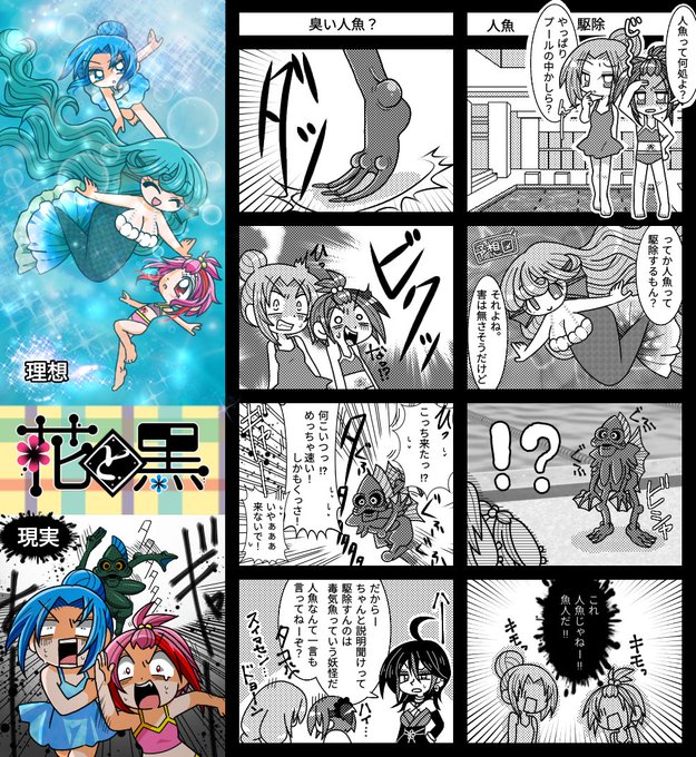 イースターの絵と双子誕生日絵は可愛く描けたし、照院本丸の日常絵はお気に入りだし、人魚漫画は念願のリメイク出来て満足✌️🤤✌️ #2023年自分が選ぶ今年上半期の4枚 #花と黒 #乙女審神者は恋にゲームに忙しい