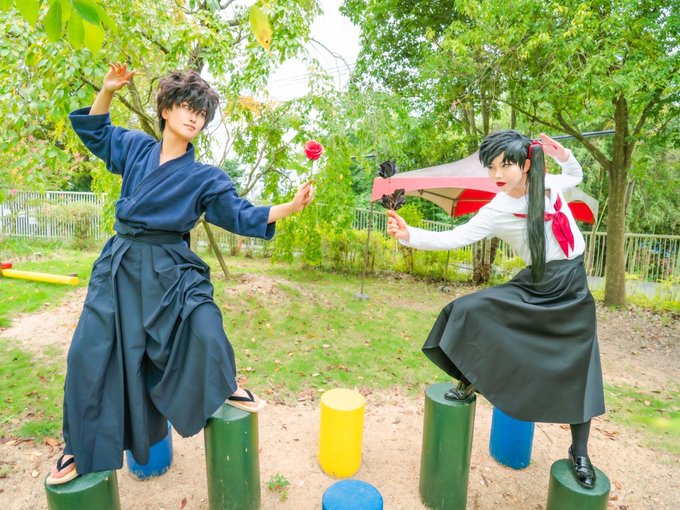 🍥らんま1/2🍥 わちゃわちゃ出来て楽しかったぁ☺️🎵 1枚目📷@bnao70701 ナオさん 2枚目📷@ajifugu_Camera アジ河豚さん 3枚目📷@teppeeeeee_74 てっぺーさん 暑い中お写真ありがとうございます🙏🏻✨✨ #2022らんま併せ #花の文化園 メンバーはリプ欄😊
