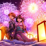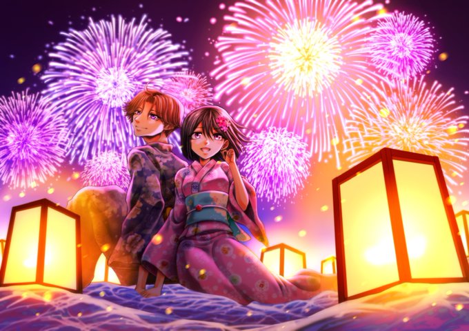 新作です。タイトルは「灯籠と花火大会」‼️ . 見て下さった方の中で、少しでも気に入っていただけましたら幸いです(*´∇`*)✨✨ . . #絵描きさんと繋がりたい #illustration #花火 #灯籠流し #灯籠