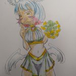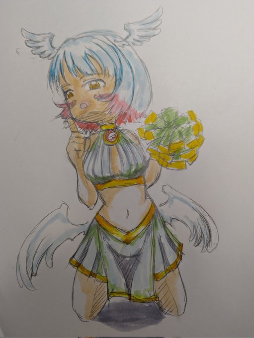 今回は羽ミミちゃん チアリーダー風 たまにはこういう娘もいいと思ってチョイスなのです。 ◉‿◉ #花maruの絵 #羽娘 #アナログ絵 #オリジナルキャラクター #絵柄が好みって人がいればいいなぁ