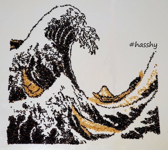 胡麻アート『北斎富嶽三十六 神奈川沖裏』 黒胡麻と白胡麻の作品 なかなか風景画は難しいですね...(^_^;) #絵描きさんと繋がりたい #クリエイターと繋がりたい #芸術家と繋がりたい #現代アートと繋がりたい #胡麻アート #SesamiArt