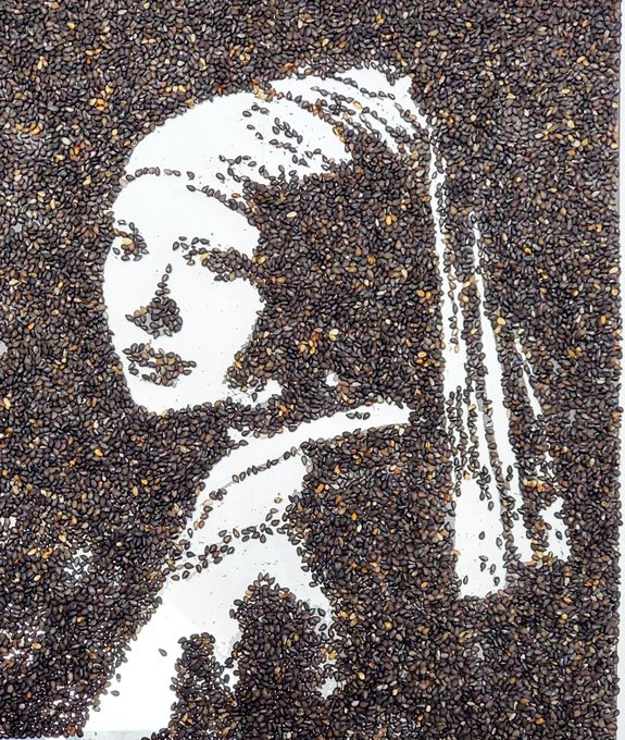 胡麻アート『真珠の耳飾りの少女』模写 #絵描きさんと繋がりたい #クリエイターと繋がりたい #芸術家と繋がりたい #現代アートと繋がりたい #胡麻アート #SesamiArt #真珠の耳飾りの少女 #Girlwithapearlearring