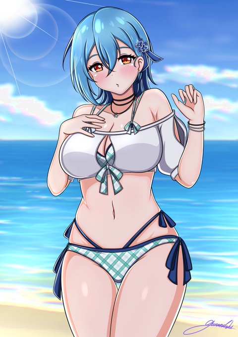 しきめいでアロハ🤙 一応全員分描きました アロハっぽい服が特別好きなわけではありませんが、髪型をお揃いにされたりするのによわい🫠 それはそうと四季さんの衣装はもうこれ水着では? #若菜四季 #米女メイ twitter.com/i/web/status/1…