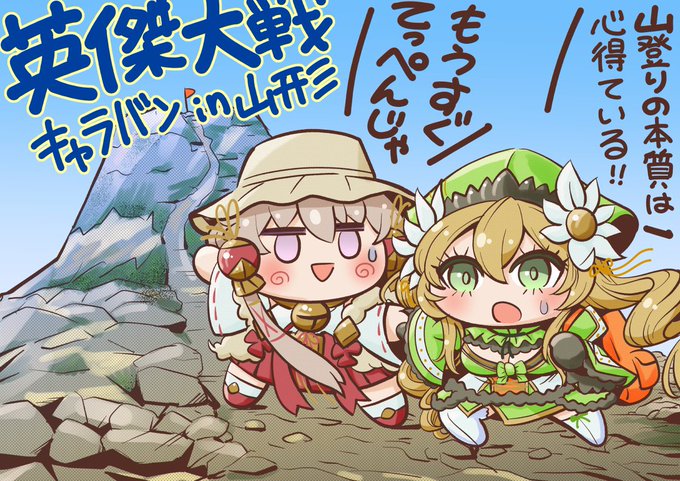 19日英傑大戦キャラバンと1DAYトーナメント開催! 今回は山形開催!ゲストでいらっしゃる夢路キリコ先生の阿茶局と望月千代女の山登りを描きました 行かれる方は楽しんできてください #英傑大戦キャラバンin山形 #英傑大戦 twitter.com/eiketsu_taisen…