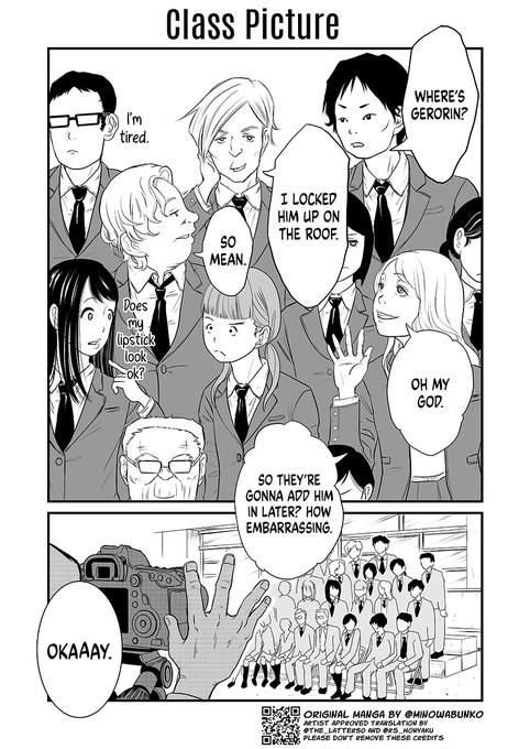 [Class Picture] Short Short Horror Chapter 1 from @minowabunko Translation by @the_latter50 and Red String #manga #漫画が読めるハッシュタグ #英語の勉強 #Spooktober