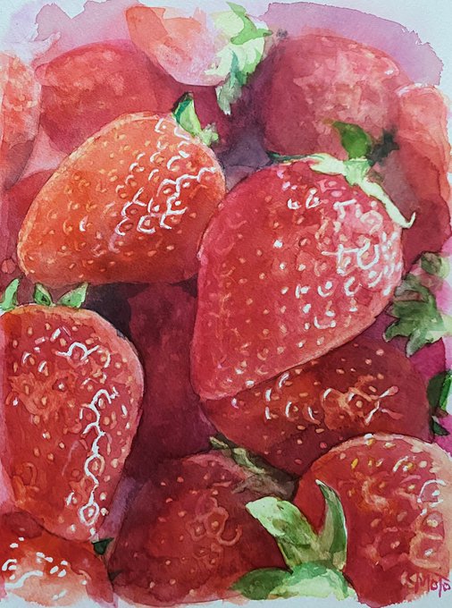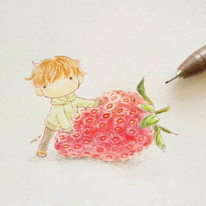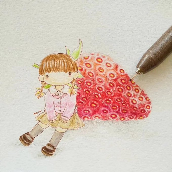 果物の味をテーマにしたシリーズです! みんなさんはどんな果物が一番好きですか 私は苺が好きです🍓 #oilpainting #strawberry #苺 #イチジク #モモ #drawing #art #artist #illustration #sketch #artwork #painting #draw #instaart #illustrator #arte #doodle #rkgk